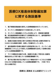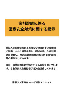 医療法人冨森会 さんぽ歯科クリニックでは以下の施設基準を取得しており、また院内掲示・web掲載が必要なものに関しまして以下の通り掲載させていただいております(2024年8月更新)